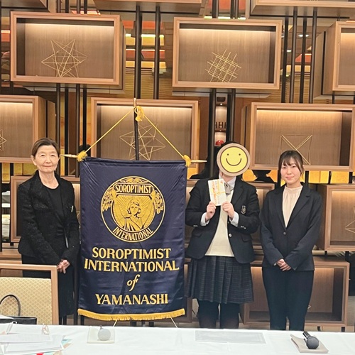 2月16日、古名屋ホテルでプログラム例会を開催し、「未来の私・JOY」賞贈呈式を行いました。この基金は国際ソロプチミスト日本東リジョン30周年記念事業「未来の私」プロジェクトの主旨を引き継ぎSI山梨が独自に設立した基金です。