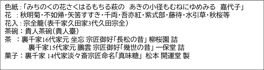 今年は10月23日の業務例会当日の開会前に致しました。会長より献茶、会員一同拝礼。その後「真味糖」とお薄茶を、相伴致しました。