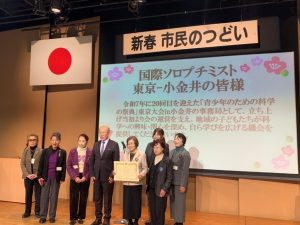 小金井市長 白井 亨・小金井市教育長大熊 雅士 連名により小金井市に於いての国際ソロプチミスト東京-小金井の活動に感謝状が授与されました。